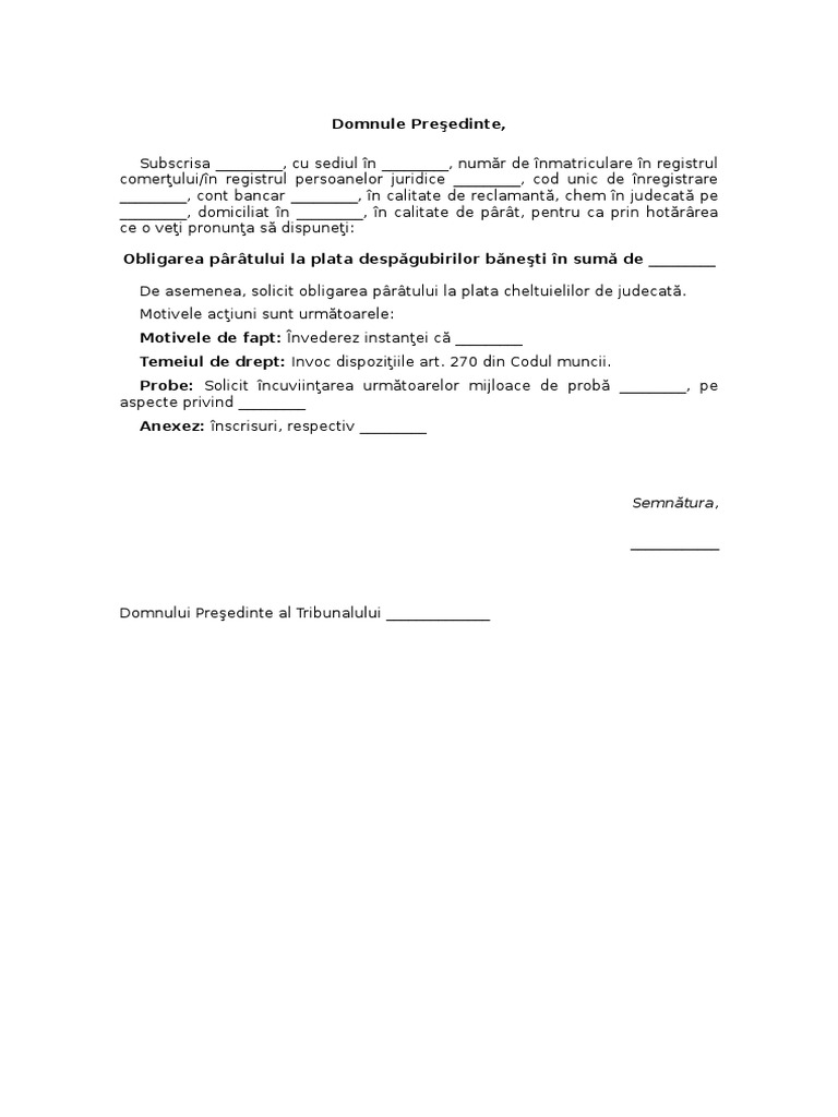 Cerere De Chemare In Judecata Conform Noului Cod Civil