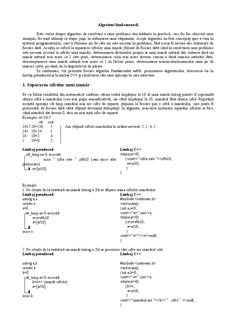 Programare In C Algoritmi Fundamentali