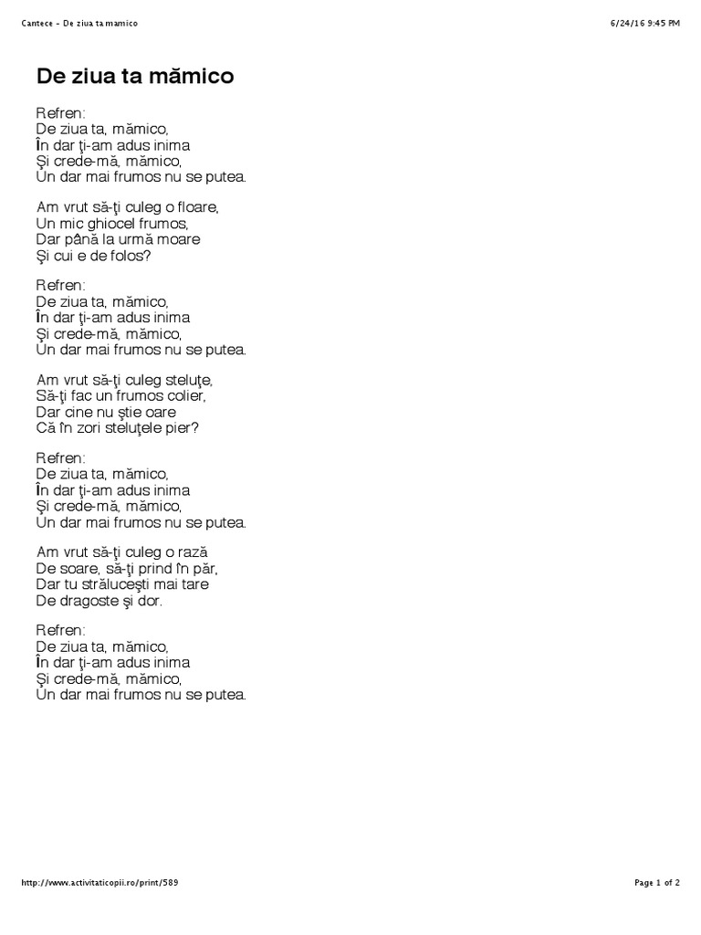 Jocuri Din Copilarie De Ziua Ta Mămico Versuri Text