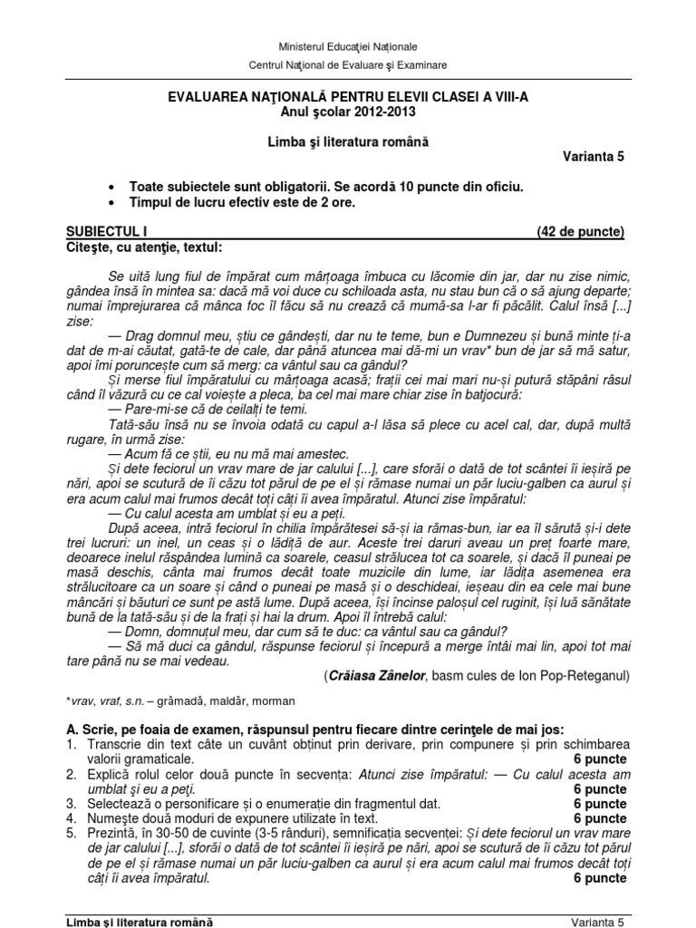 Evaluarea Nationala 2013 Barem Limba Romana Ziua Veche