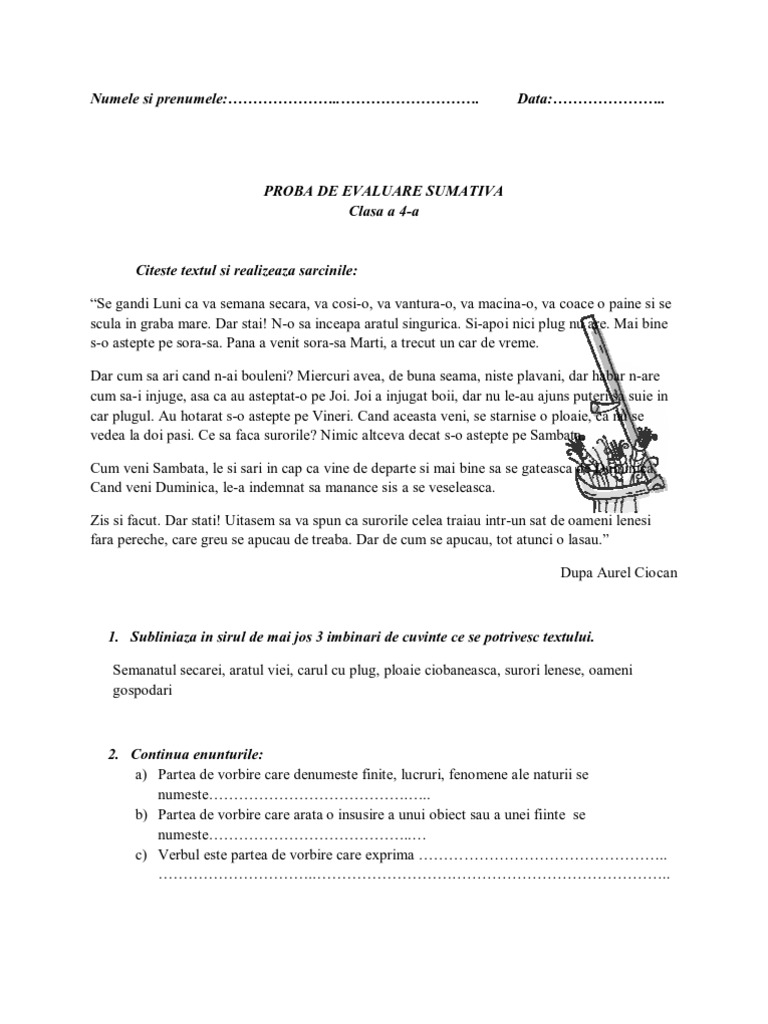 Fisa Evaluare Sumativa 4 A Romana