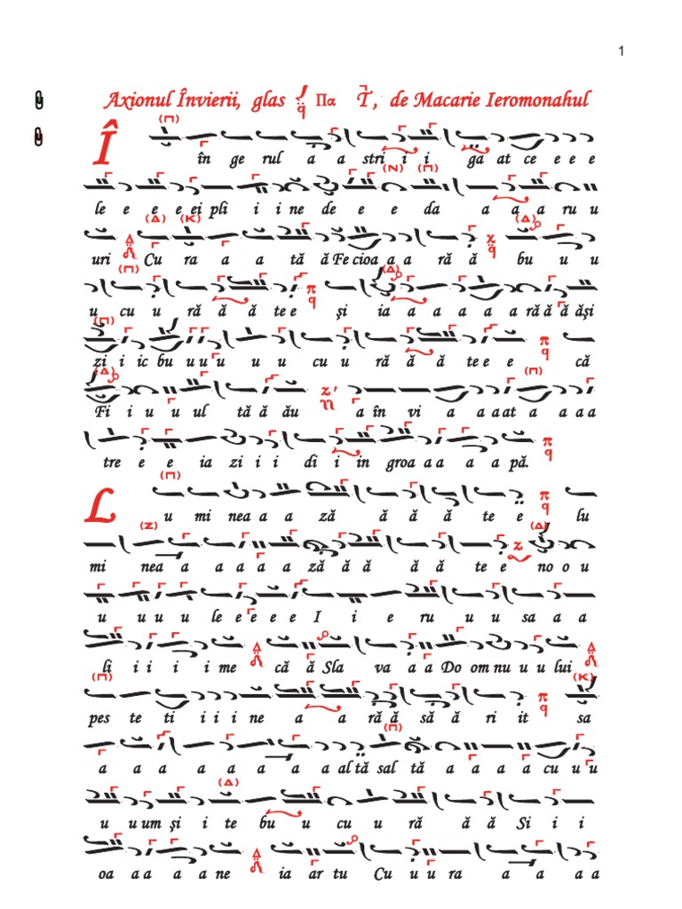 Axionul Pastilor Ingerul A Strigat Glas 1 De Macarie Ieromonahul Partitura Paralaghie Cintare