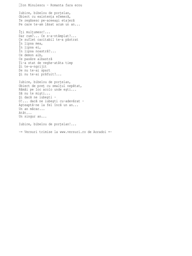 Romanta Fără Ecou Minulescu