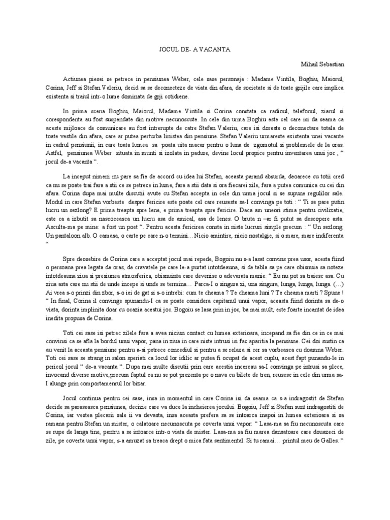Jocul De A Vacanta De Mihail Sebastian Rezumat