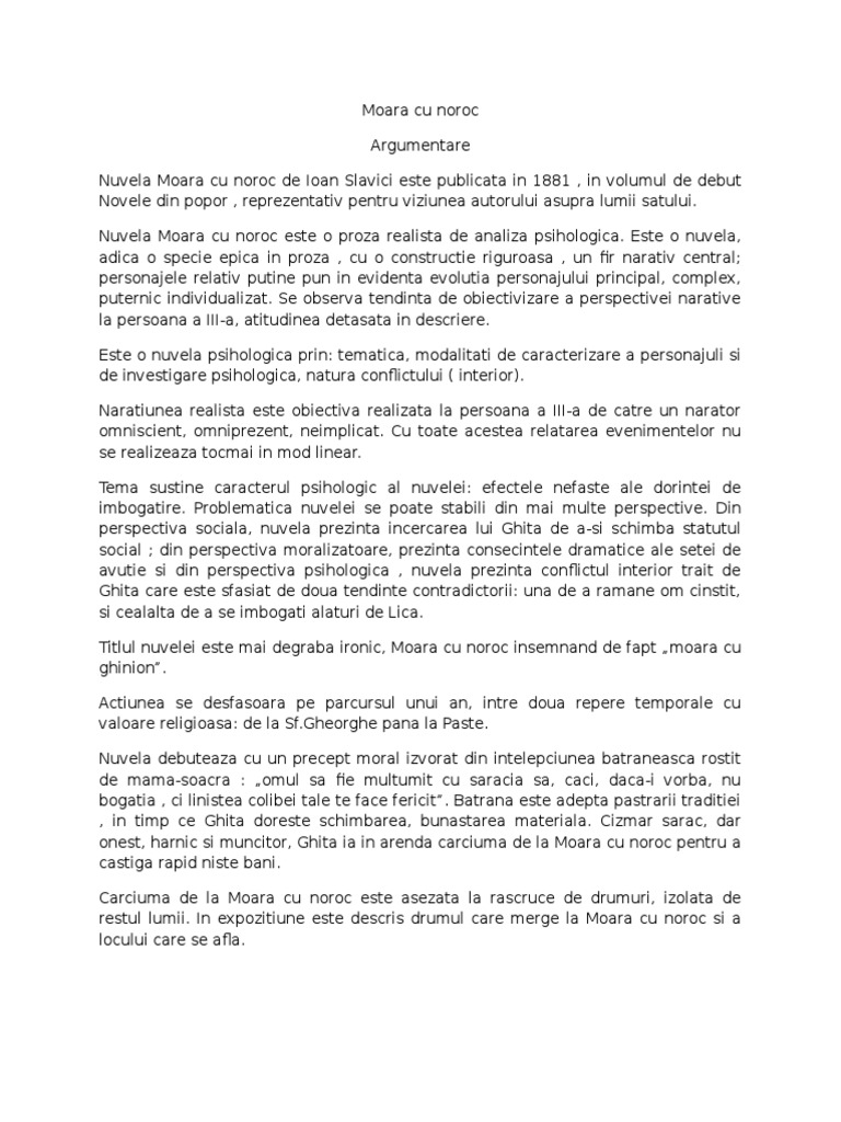 Argumentare Moara Cu Noroc Nuvela Psihologica