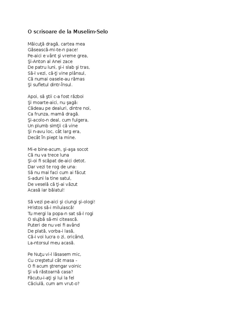 O Scrisoare De La Muselim Selo De George Cosbuc Anideșcoală Ro