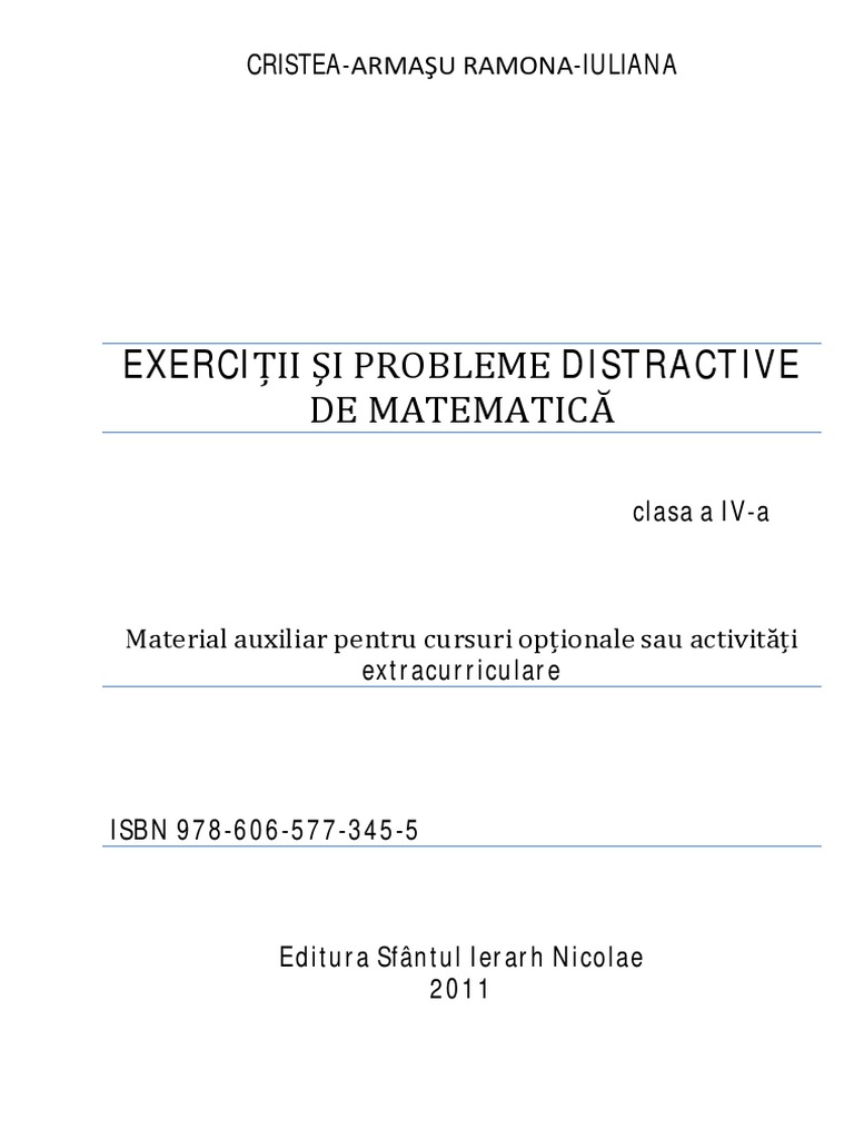 Exerciţii Si Probleme Distractive De Matematică Clasa A V A Autor Cristea Armasu Ramona Iuliana Sala De Lectură