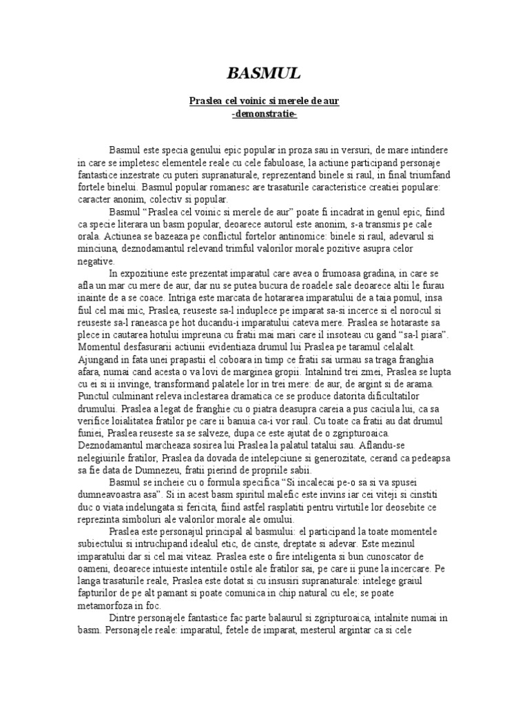 Referat Rezumatul Basmului Praslea Cel Voinic Si Merele De Aur 341629 Graduo