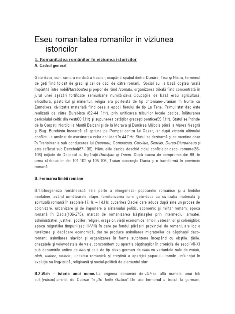 Romanitatea Romanilor In Viziunea Istoricilor Eseu Bac