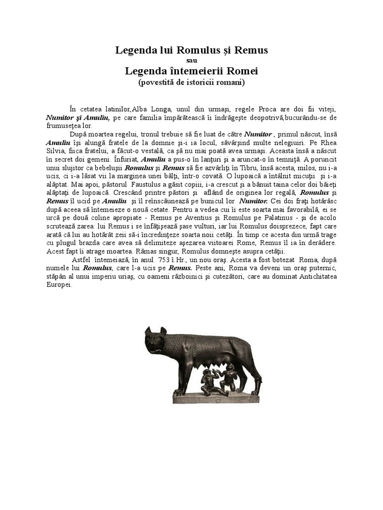 Legenda Lui Romulus Si Remus Anideșcoală Ro