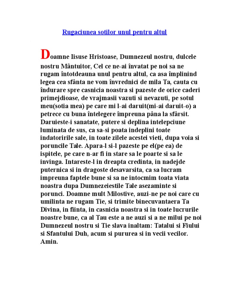 Rugaciunea Sotilor Unul Pentru Altul