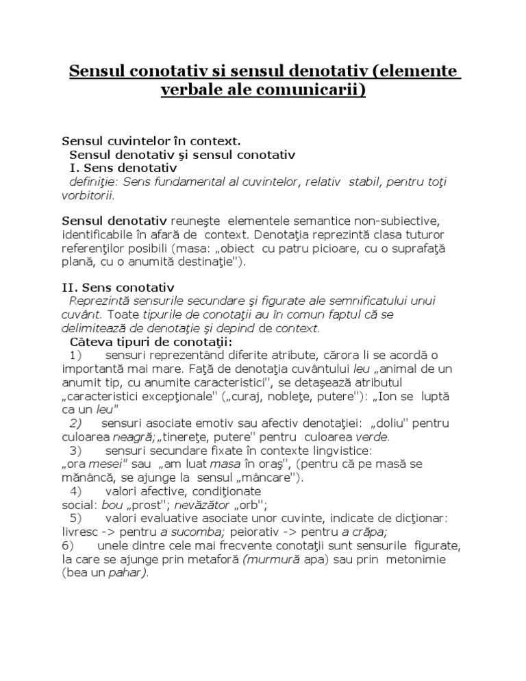 Sens Conotativ Si Denotativ