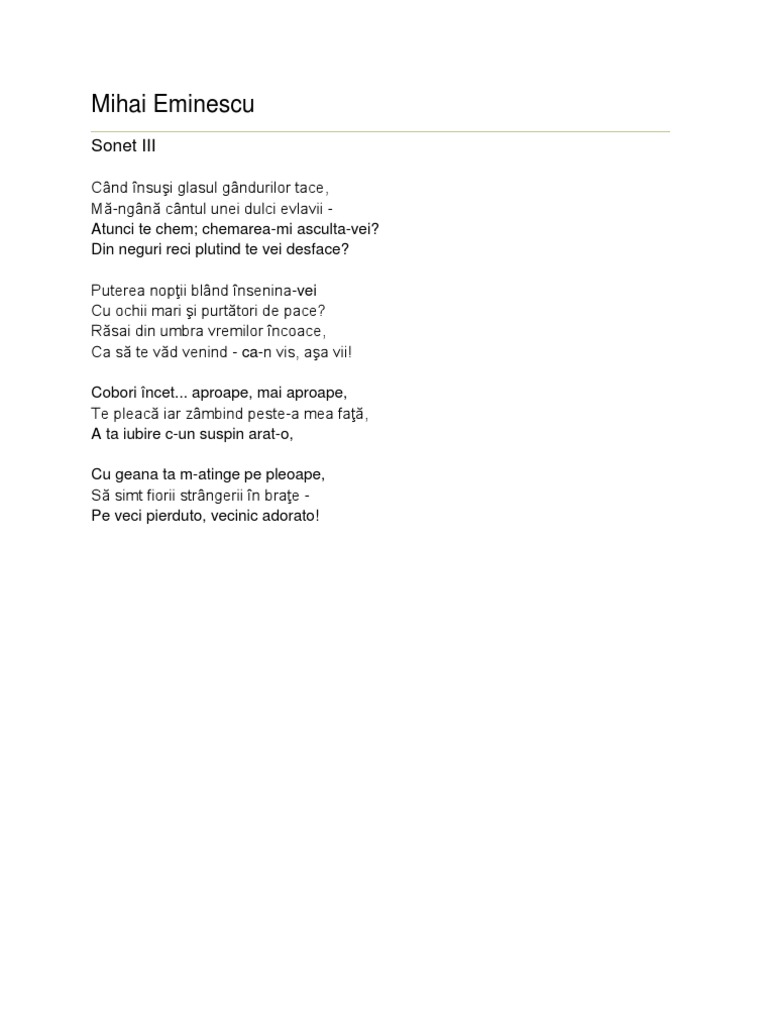 Mihai Eminescu Sonet Iii