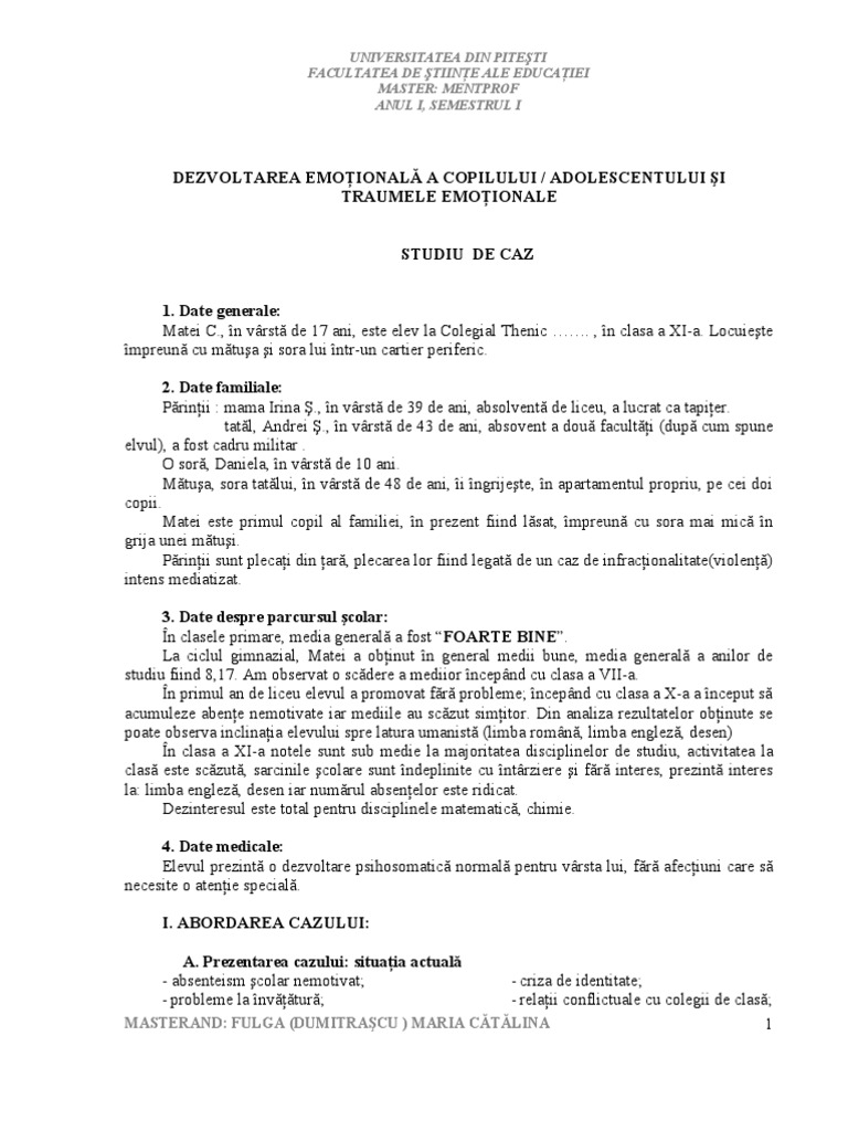Proiect Studiu De Caz Proiect Psihologie 52579 Regielive