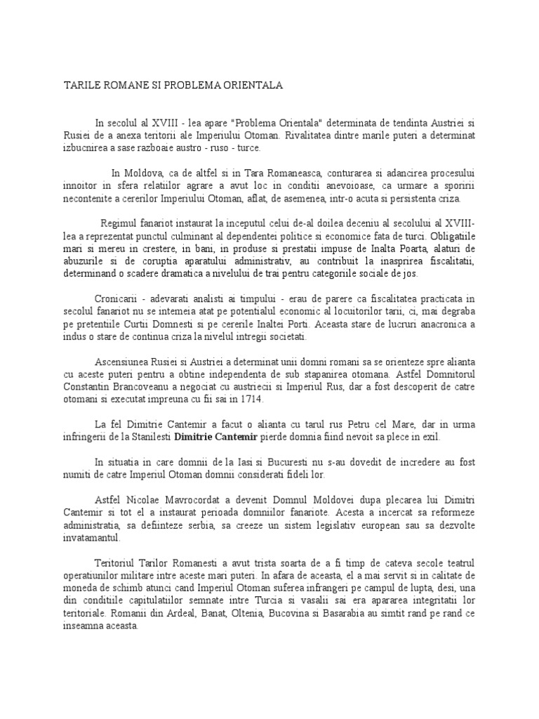 Tarile Romane Si Problema Orientala Famouswhy Ro