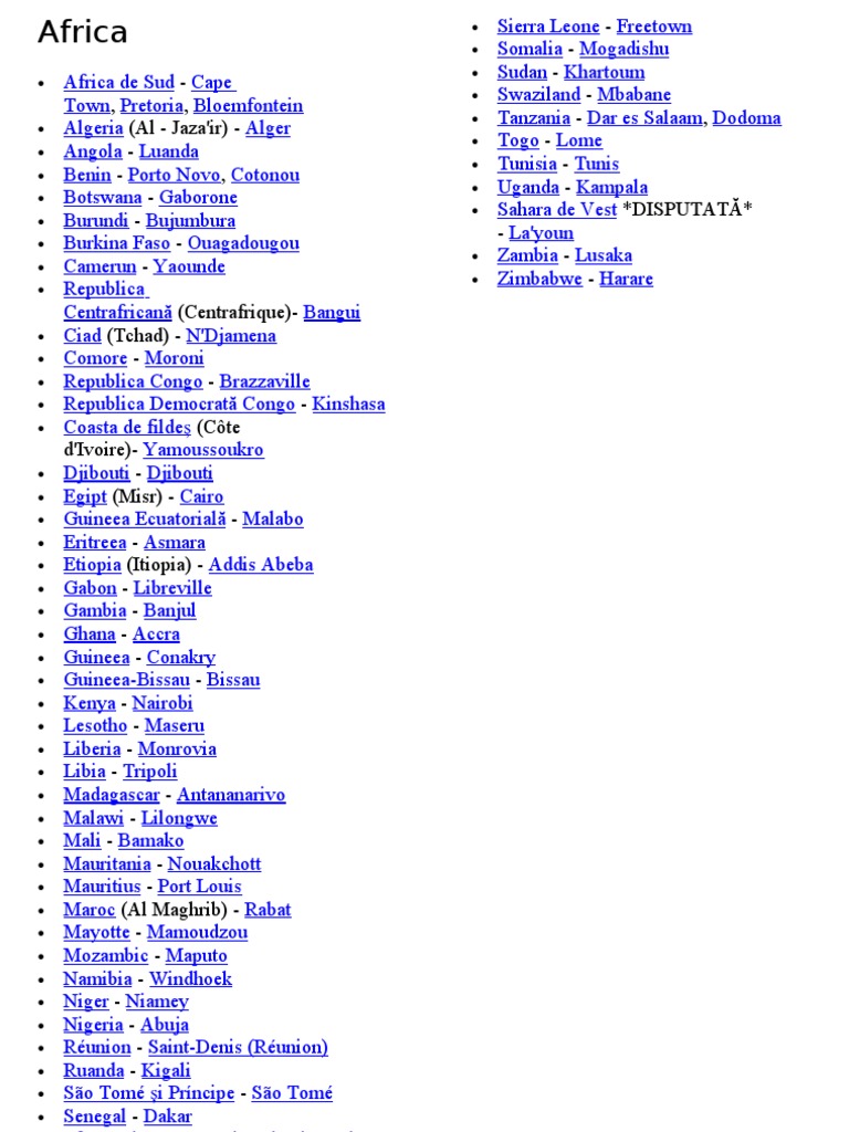 Lista Capitalelor Lumii Rotea Geografie