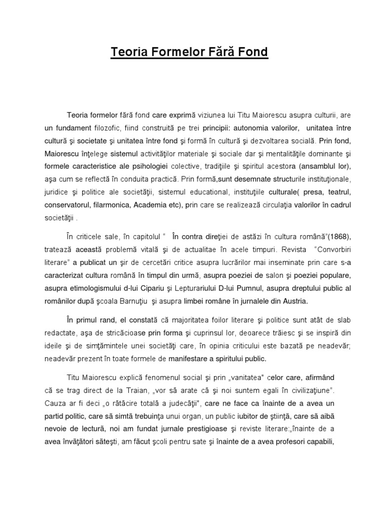 Referat Titu Maiorescu Si Teoria Formelor Fara Fond Stiintele Comunicarii 138502