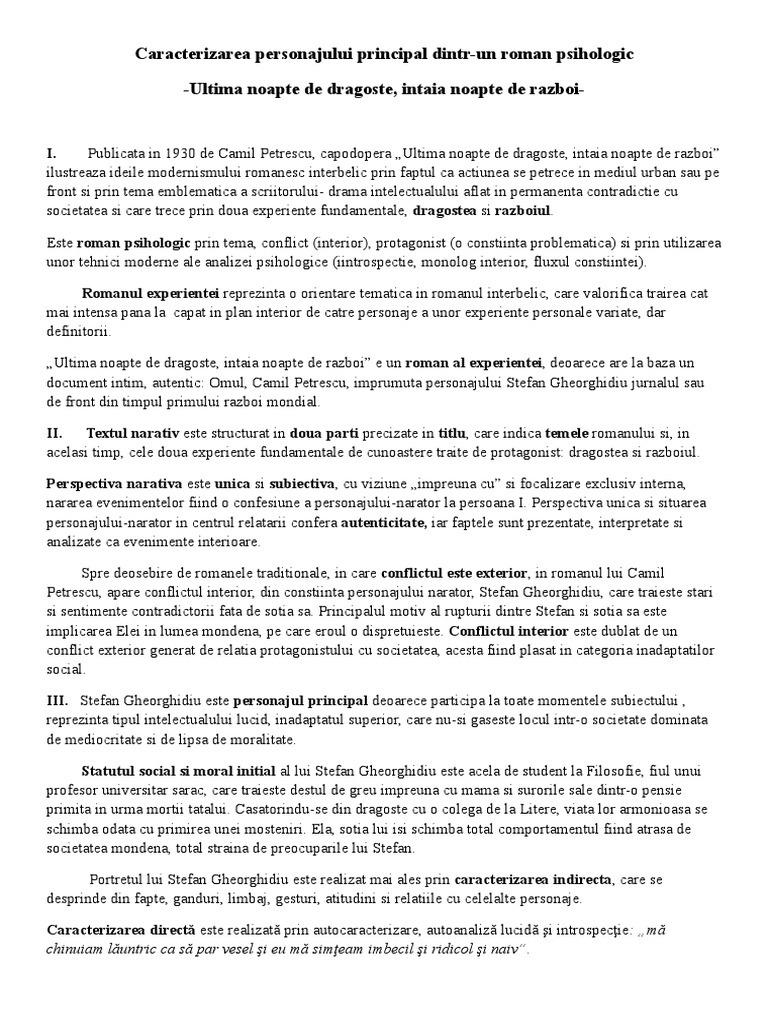 Ultima Noapte De Dragoste Caracterizarea Personajului Principal Dintr